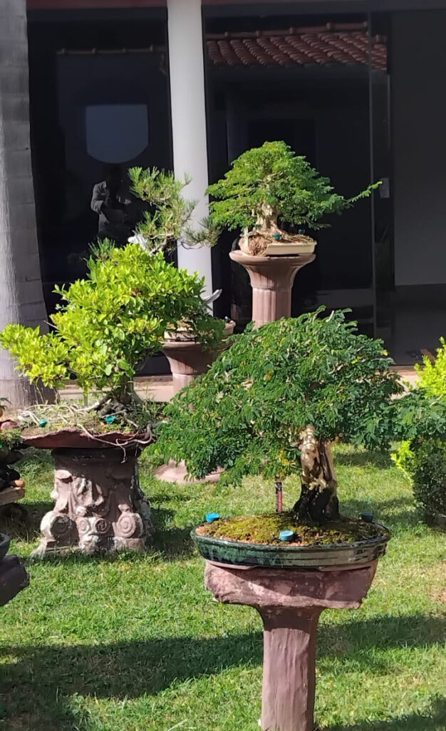 Carlos é reconhecido por sua criatividade ao criar composições únicas de bonsais.